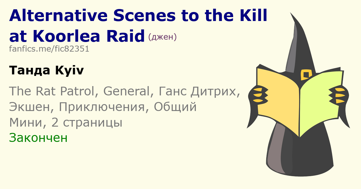 | Miauka77, тем лучше. Кстати, на странице фандома есть ссылки на англоязычные ресурсы с фанфиками по "Патрулю". Хотя, конечно, лучше сначала ознакомиться с каноном, чтобы понимать, "кто кому Рабинович" :) | |