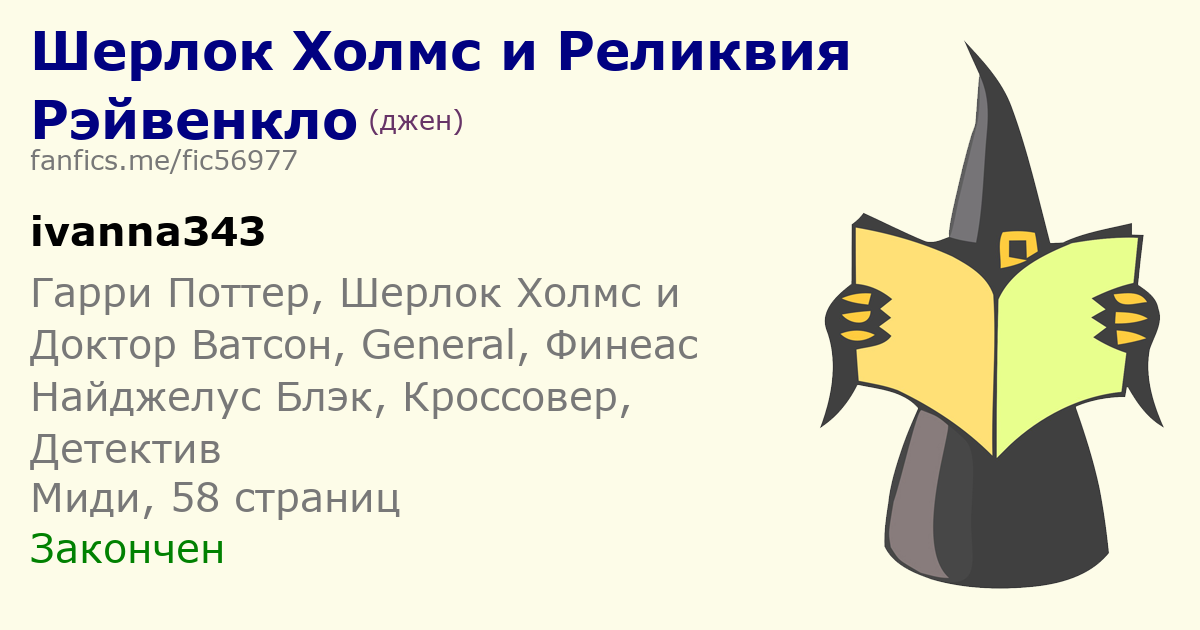 | Шикарный кроссовер! И стилистика произведений сэра Дойля выдержана, и дух Хогвартса уловили. Прямо наслаждение. 1 | |